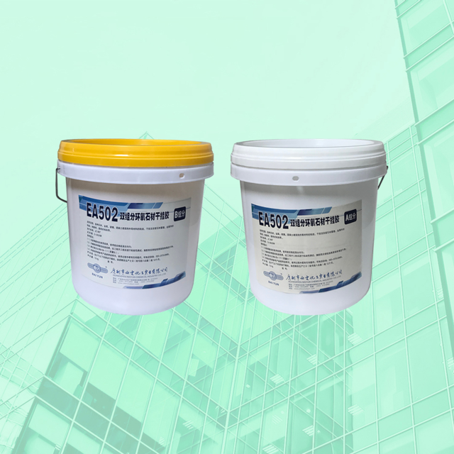 EA502环氧石材干挂胶属于改性环氧树脂聚合物,是一种双组分、高模量、高强度的快速固化密封胶,可广泛应用于各种石材,金属,玻璃,混凝土建筑构件等材料的粘结;干挂法安装石材幕墙、金属件的粘结;地板砖、瓷砖的粘贴等。EA502分A、B两个组分,A组分为白色,B组分为黄色,混合后为浅黄色。